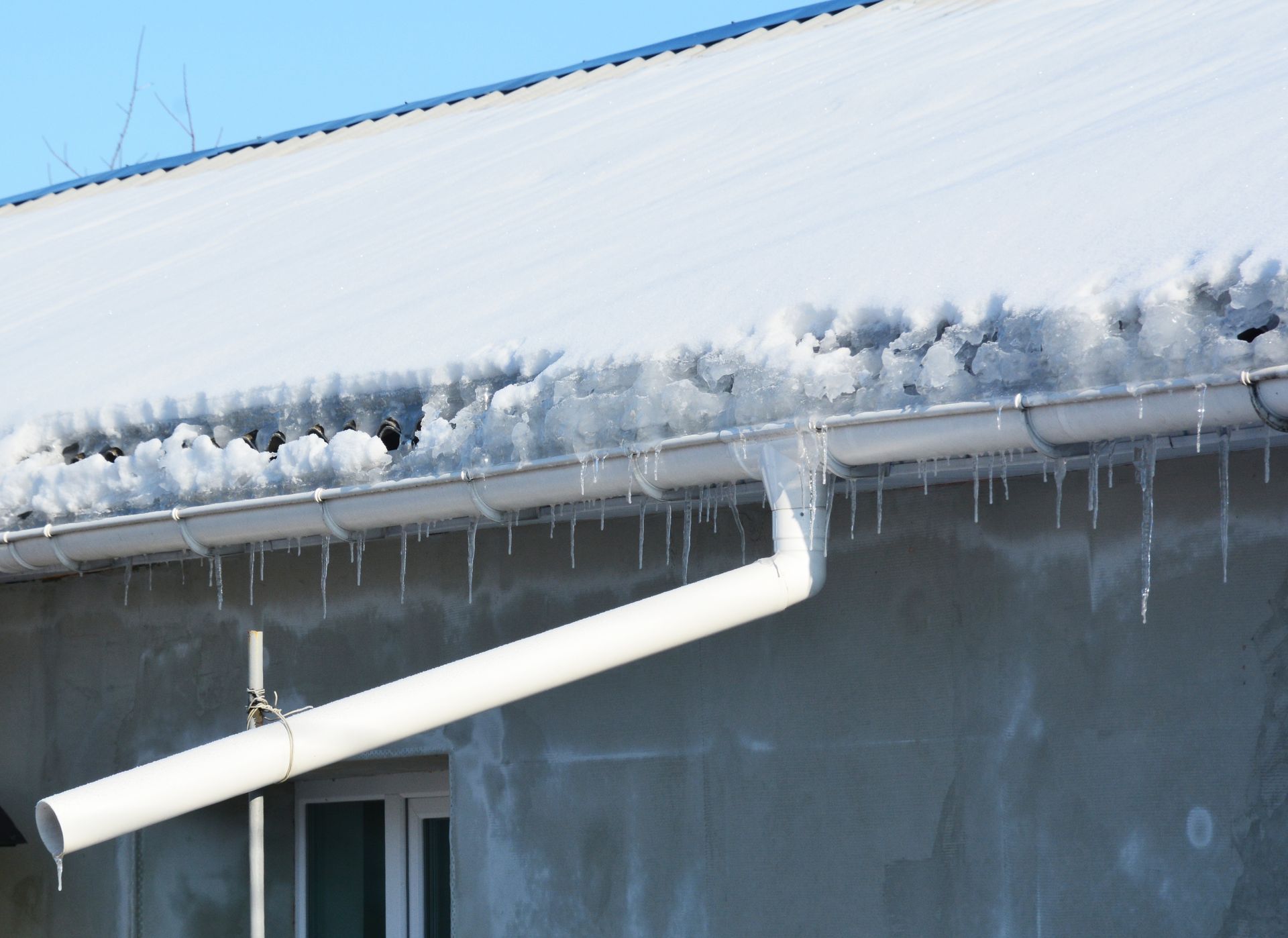 - The ice at the eaves creates a danger to foot or vehicular traffic below